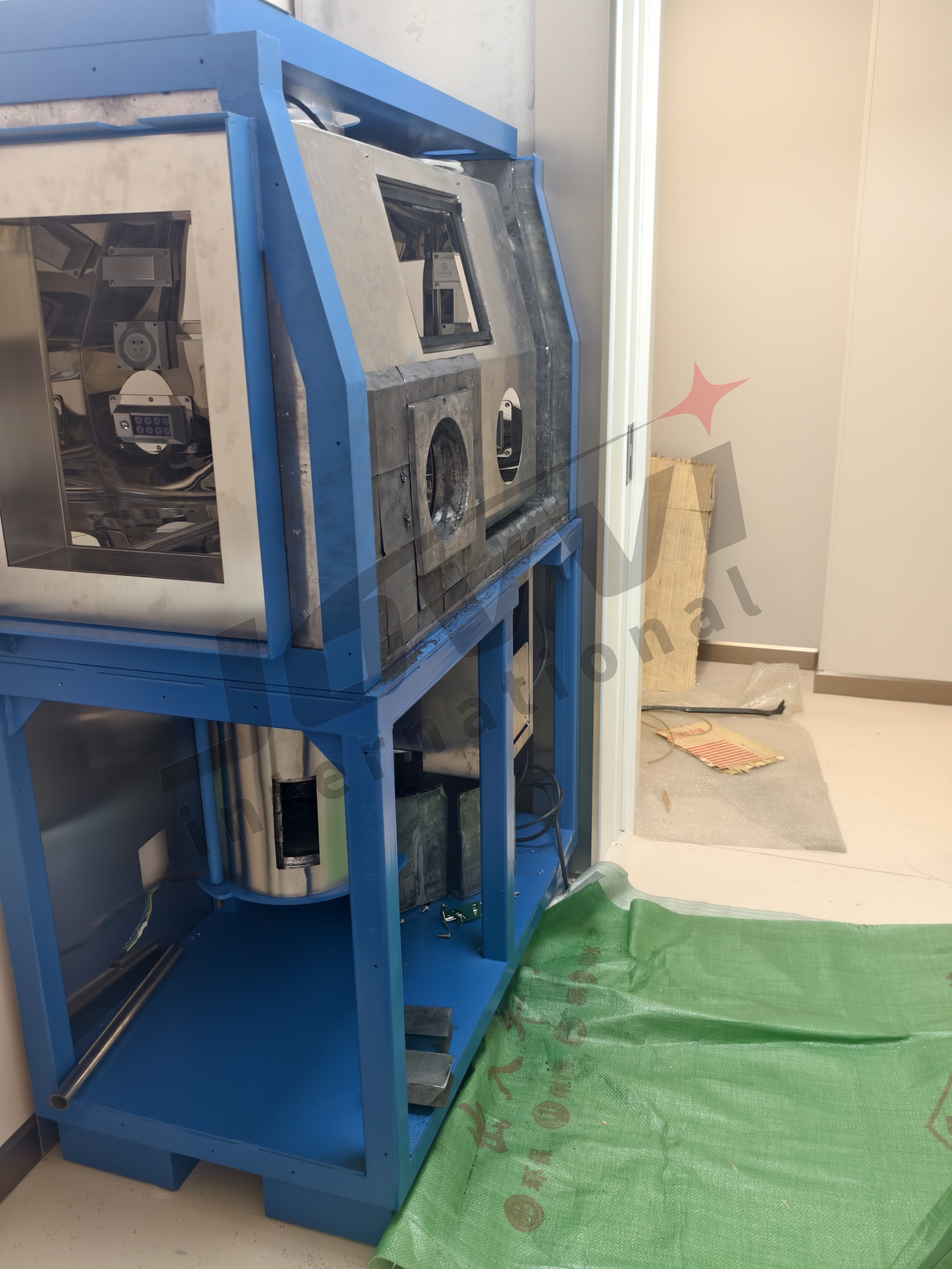 Il prodotto è anche parte integrante dei contenitori di piombo per la protezione dalle radiazioni, facilitando il contenimento e il trasporto sicuri di materiali radioattivi. Il suo design leggero e portatile consente una facile manipolazione e posizionamento, supportato da un'alimentazione robusta da 50 Hz/10 A/220 V con protezione di sicurezza integrata per un funzionamento costante in ambienti industriali e medici.